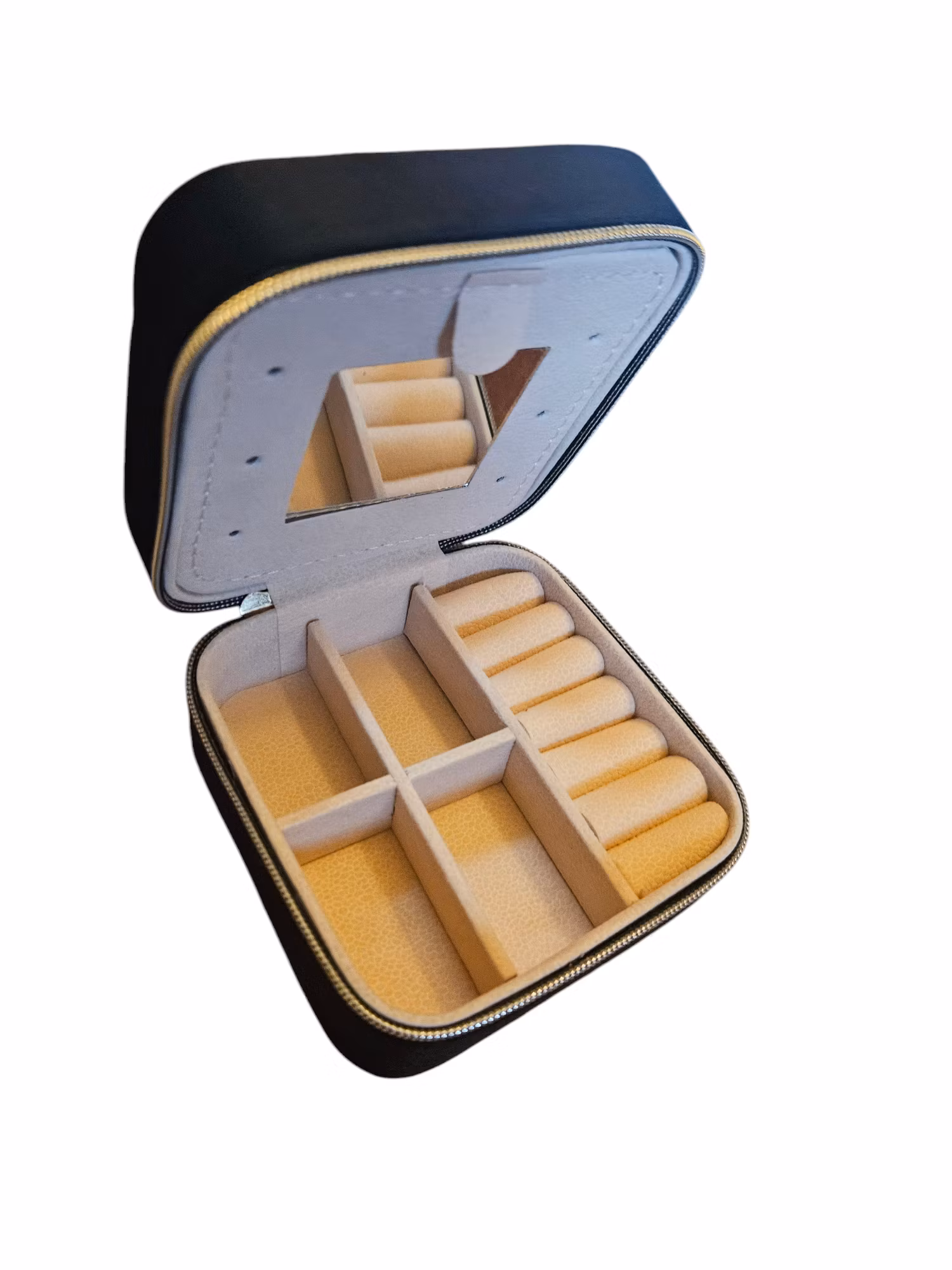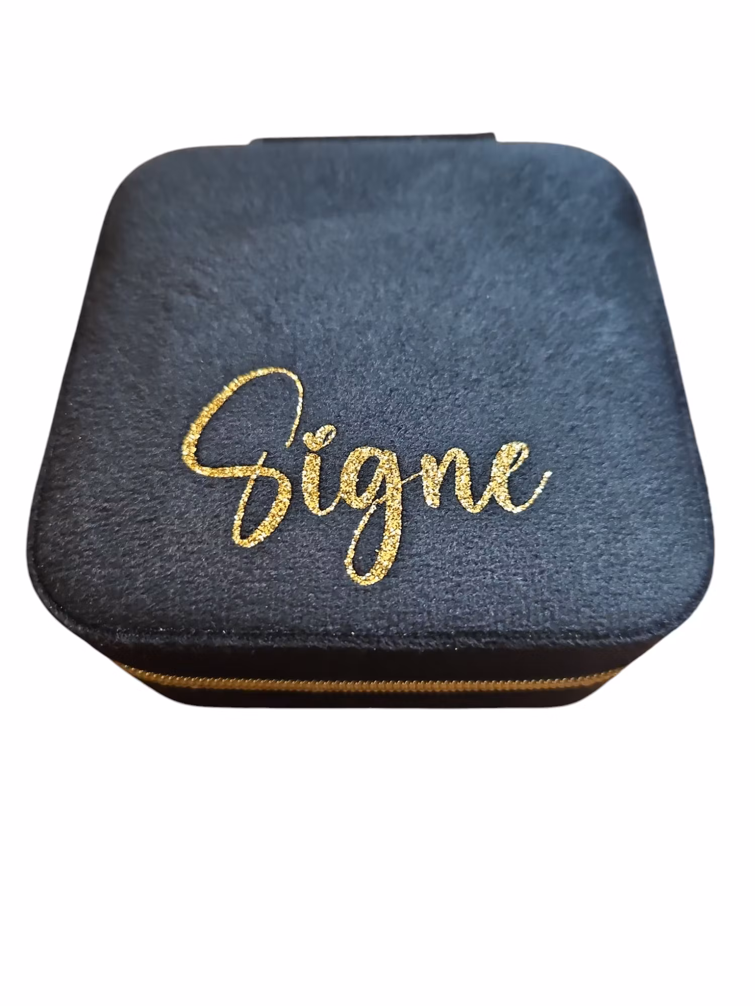 Sort smykkeskrin i myk fløyel - en perfekt gave til deg selv eller en du er glad i. Beskytter smykkene dine og har flere rom for enkel organisering. Perfekt hjemme eller på reise!