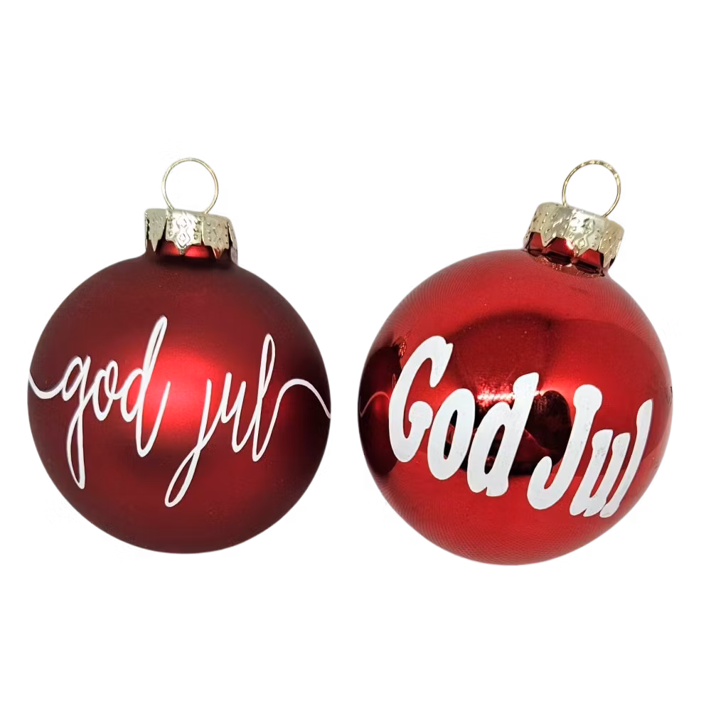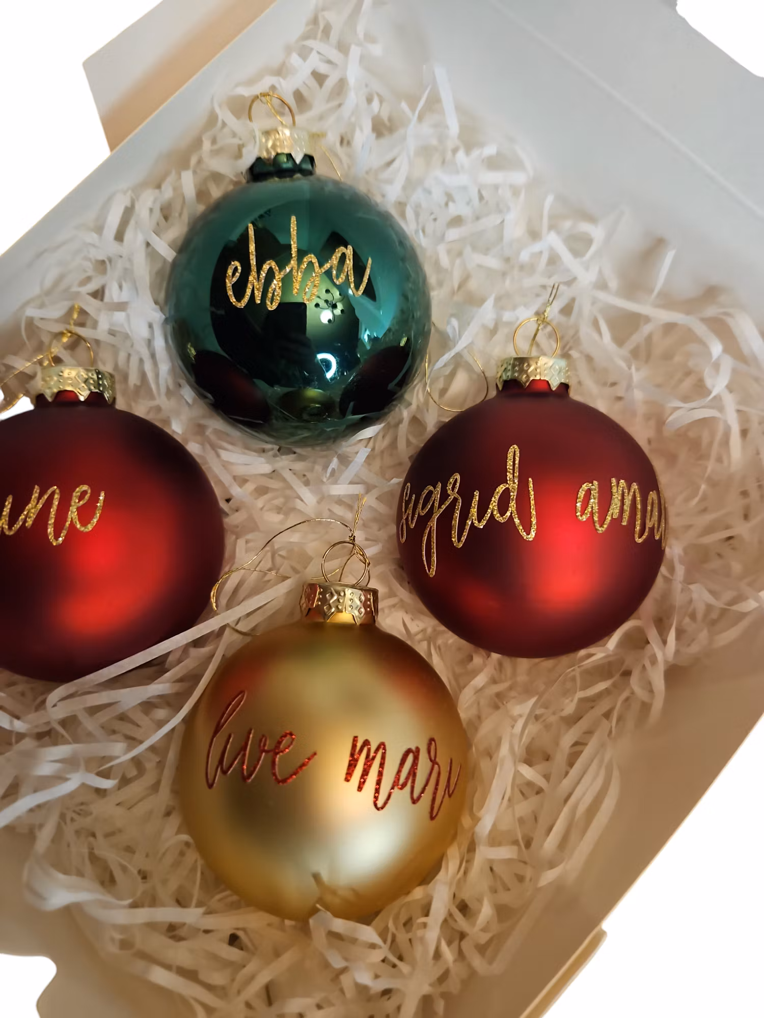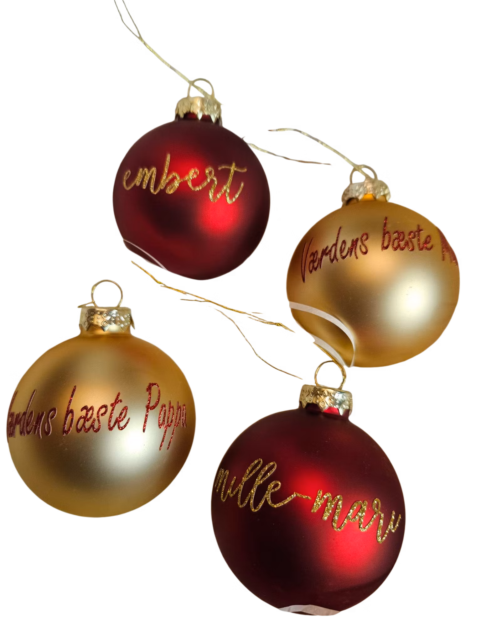Her kan du velge navn, skrifttype og farge på skriften på julekulen.