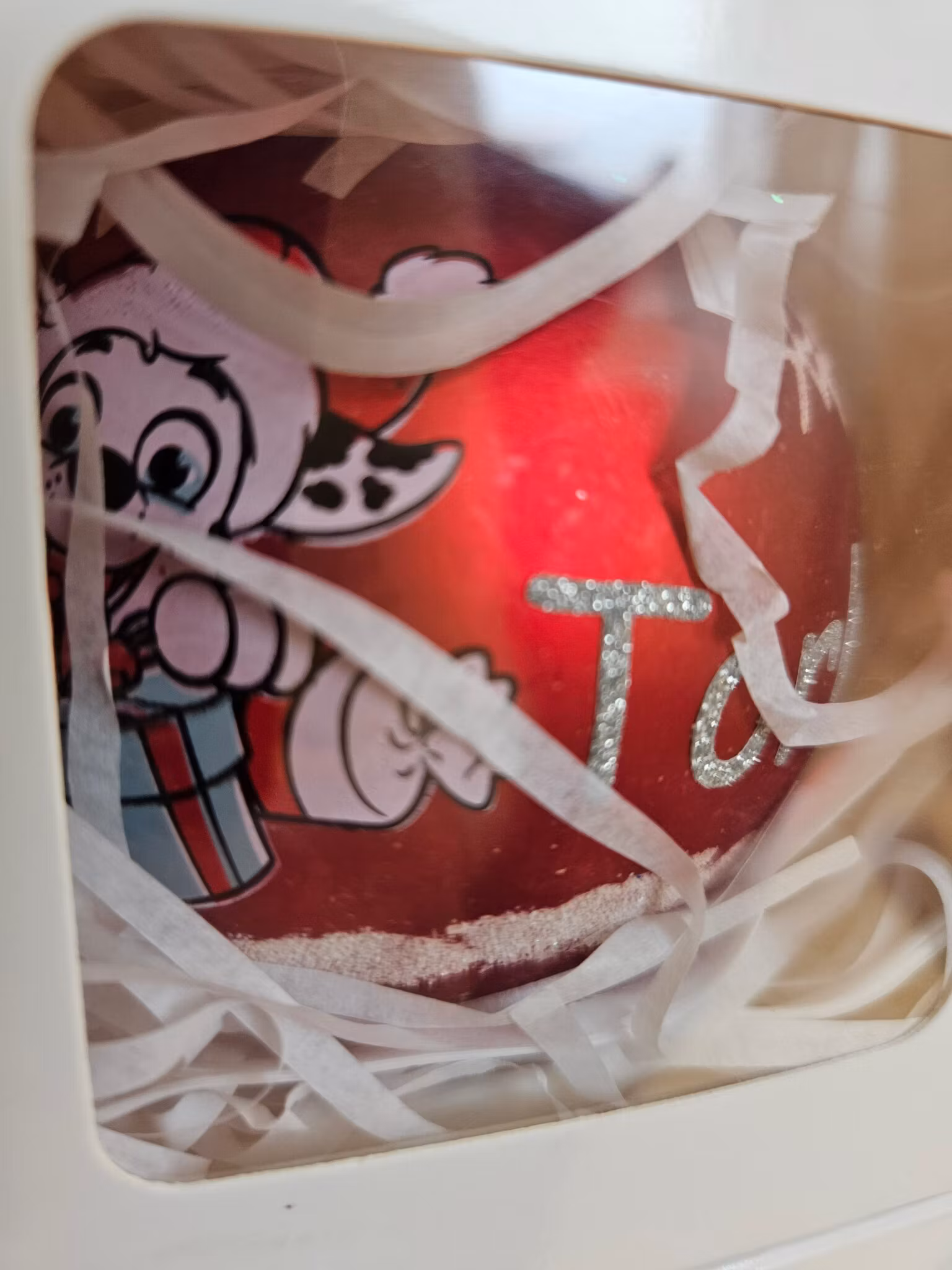 Her kan du velge navn og skrifttype. Julekulen som vist på bilde har skrifttype nr. 6.