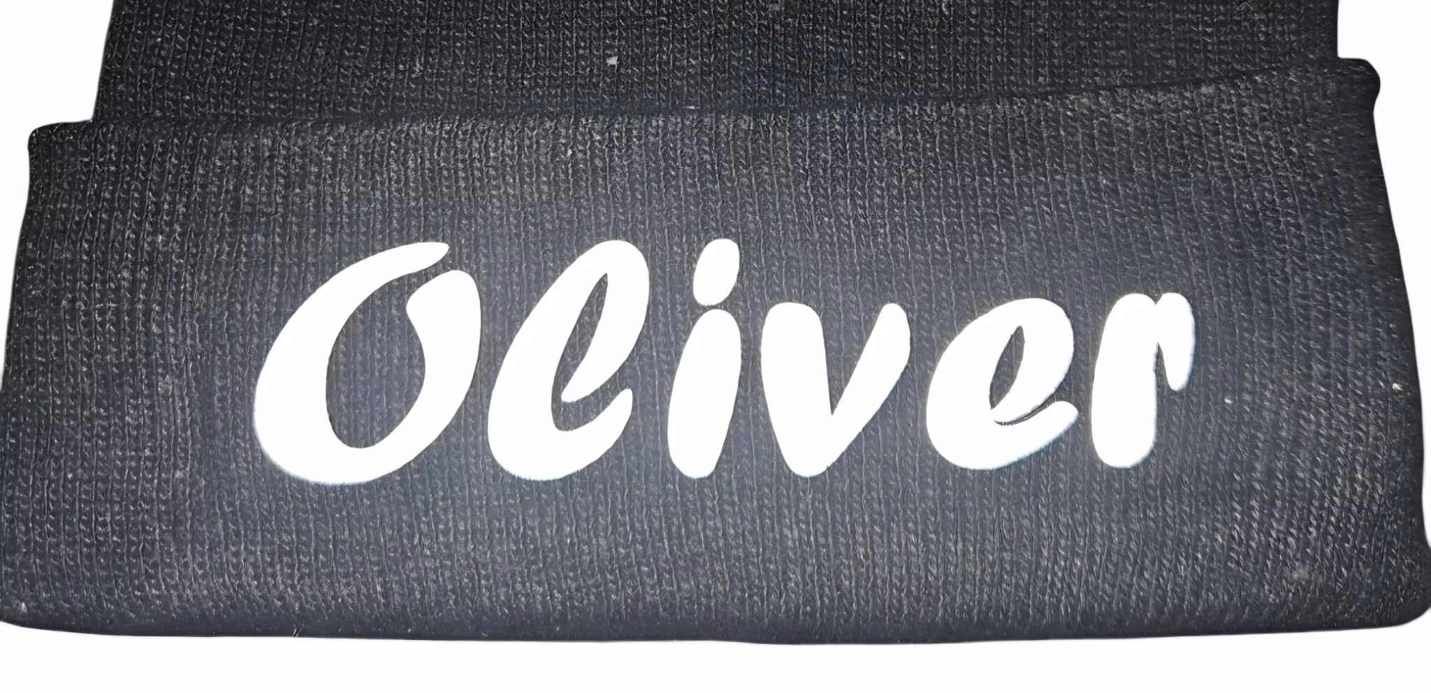 Lue til jr/voksen, valgfritt navn trykket med refleks. Du kan velge mellom gull eller sølv refleks. Stort eller lite navnetrykk. Og Skrifttype.