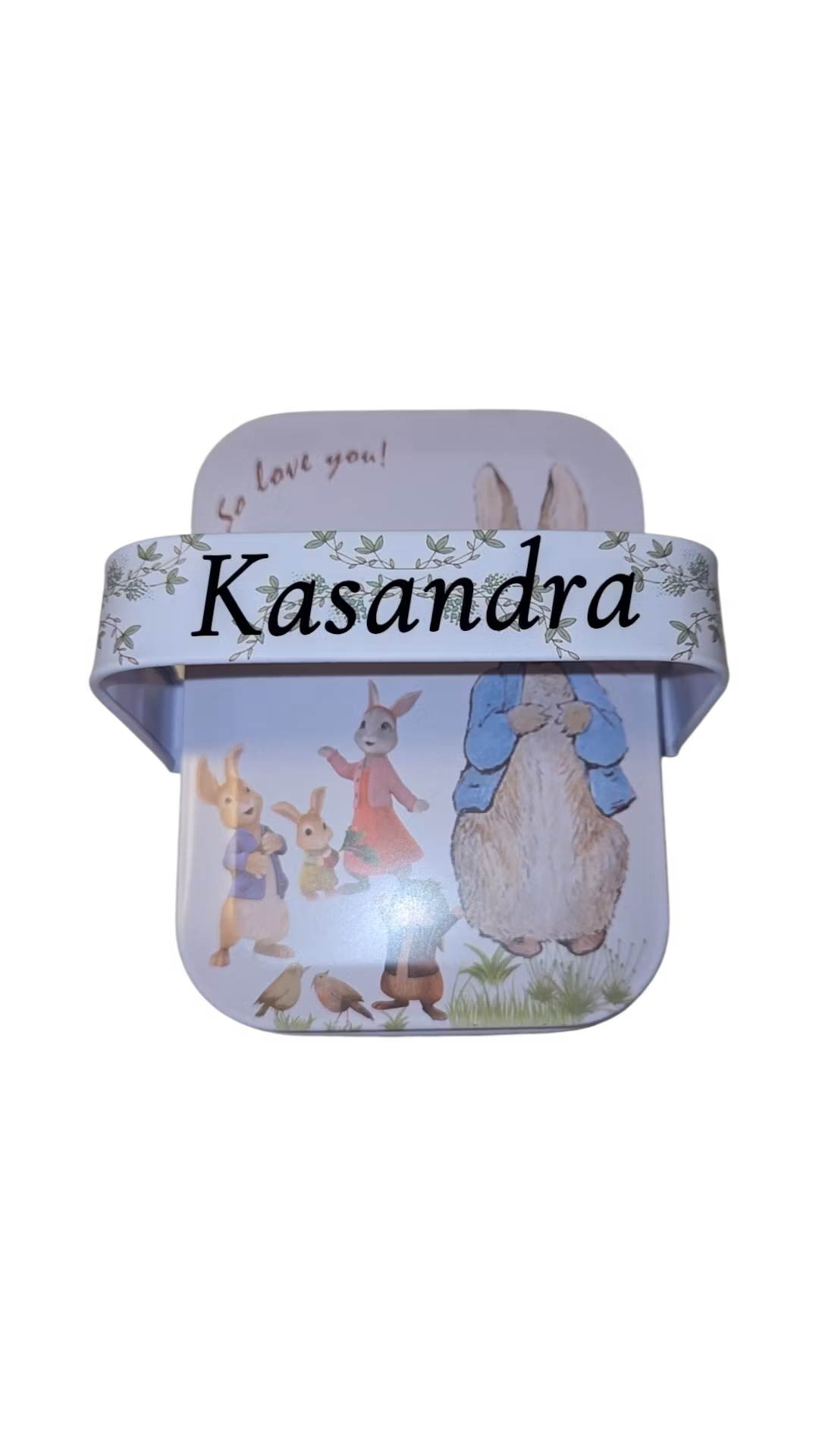 Hvit liten påskeboks med navn.