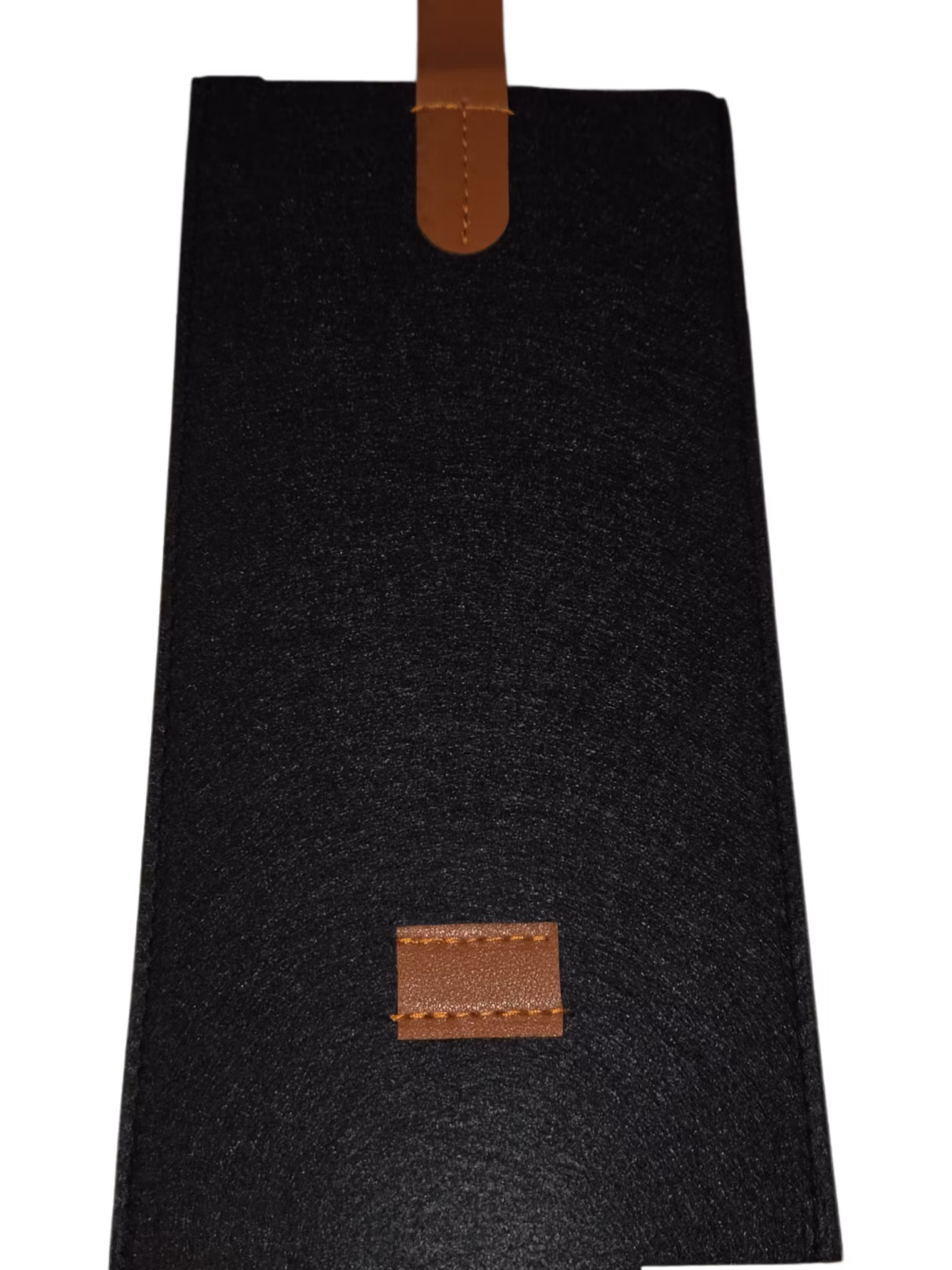 Sort flaskepose med valgfritekst. Teksten vil bli trykket i hvitt.